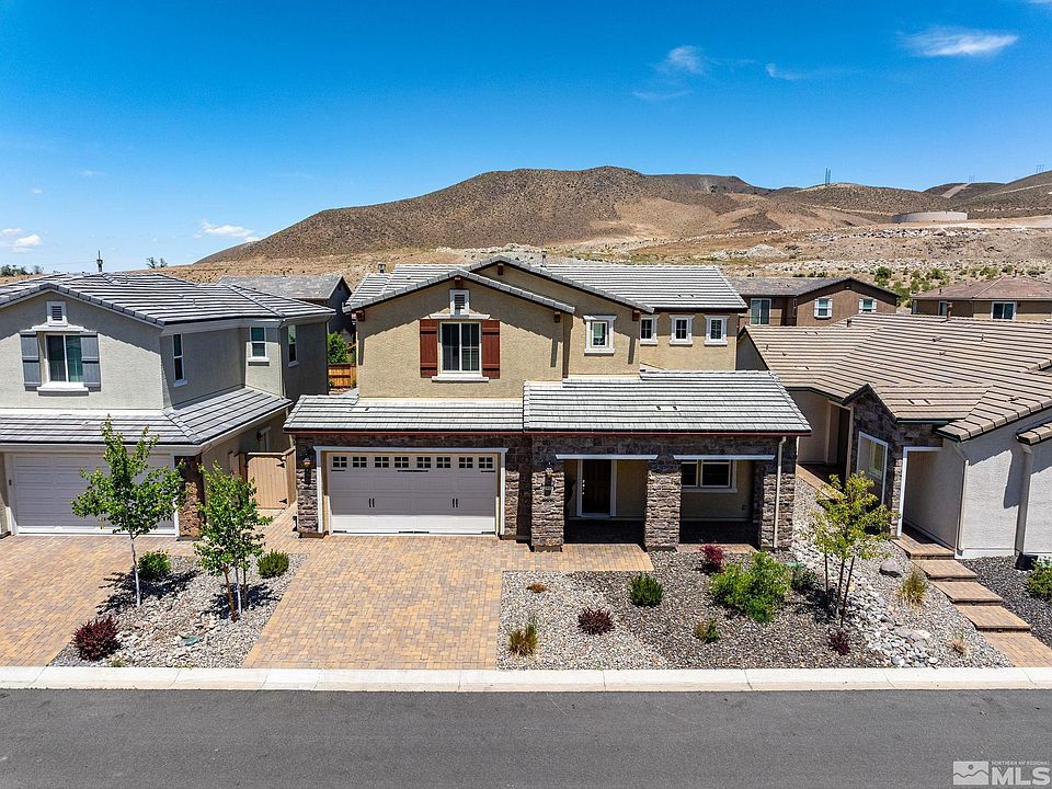 Heavily upgraded home in Saddle Ridge, one of Damonte's most popular gated communities! The home is highlighted by over $130k in builder upgrades: "wood-look" plank tile floors, enhanced staircase bannister package, 10ft ceilings, 4-panel stackable sliding glass doors, linear gas fireplace, built-in surround system, upgraded lighting package and master bath tile package. The kitchen has a granite island, gas cook top, full pantry and stainless steel Kitchen Aid appliances., The 10ft ceilings on the 2nd floor create an open feel in all the bedrooms and loft, along with a large laundry room that has a large linen space, laundry sink and cabinetry. Other notable features include: paver patio, custom landscaping, large 2 car garage, full gutter system, and a covered porch and patio. The HOA amenities are second to none with a great clubhouse, tennis/pickle ball courts, pool, hot tub, gym, on-site security and guard at the access gates.