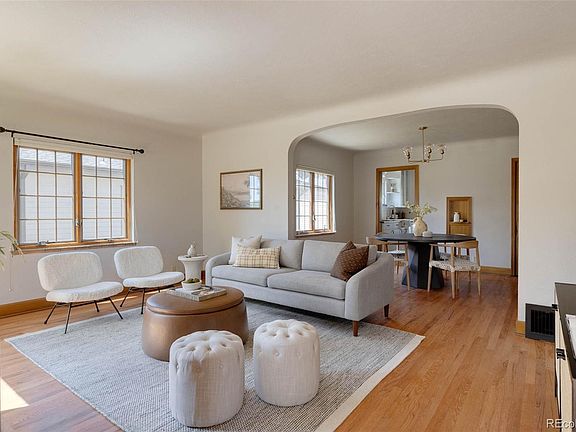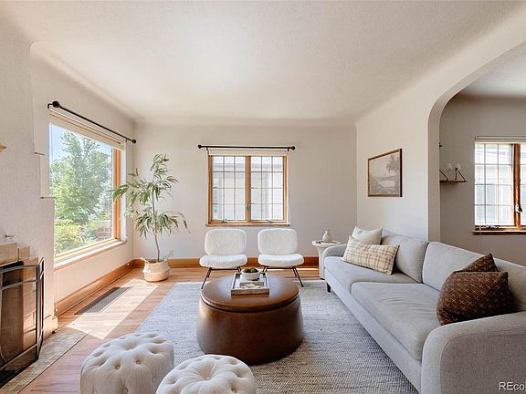 Welcome home to this stunning Tudor set on a tree lined street in desirable Wheat Ridge. Thoughtfully updated with modern conveniences while preserving the character and architecture of this beautiful home. Front door with stained glass accents leads to foyer with coat closet. Bright and open living room featuring a wood burning fireplace and oversized windows that allow for a flood of natural light. Charming arched entryway to the large dining room and adjacent gourmet kitchen updated with stainless steel appliances, farmhouse sink and butcher block countertops. Designer features and accents, white cabinetry, kitchen nook perfect for an eat-in area or a coffee bar. Two spacious bedrooms with ceiling fans and full, updated bathroom complete the main level. Refinished hardwoods and fresh paint throughout the main level. Beautifully finished basement is perfect for mother in law suite and has lock off ready. Incredible opportunity to have an Airbnb with large bedroom, wardrobe included, or recreation room allowing for full studio that includes a living room space and kitchenette with sink and refrigerator. Recently updated bathroom, laundry room with new tile and huge storage closet with built in shelving.Incredible corner lot with mature landscaping, front and back smart irrigation system, private, fully fenced backyard and a gardener’s paradise with raised beds and plentiful produce from apples, peaches and four types of berries. Covered back patio with built-in speakers and gas line for grill. One-car detached garage with room for storage and additional oversized carport. Amazing, central location less than a mile to Sloan’s Lake, Edgewater, parks, shops and restaurants. Easy access to downtown and the mountains. Move in ready and awaiting new owners wanting the incredible opportunity to call this home their own.