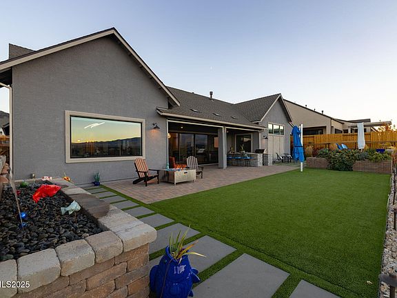 Discover the Charm and Luxury of This Distinctive Home in the Ridgeline Neighborhood of Carmella Ranch! Step inside and be welcomed by an expansive open-concept floorplan, where every detail has been thoughtfully curated to create a perfect blend of style and functionality. In the kitchen you'll find top of the line appliances, granite counter tops and unique drawer inserts. The custom-built pantry is a standout for those who love to entertain or enjoy culinary creativity. The primary suite is a true retreat, highlighted by a striking stone accent wall, complemented by warm walnut strip that ties in with a walnut live edge beneath the cozy fireplace. The John Louis closet system offers ample storage with sophisticated, tailored designs. Outside, the tranquil patio is an entertainer's dream. Relax by the gas fire pit, listen to the soothing sounds of the fountain and take in the breathtaking, elevated views of both the mountains and the city. This home is overflowing with upgrades that elevate its charm, making it too special to fully capture in a listing. Come see it for yourself—you won't be disappointed!
