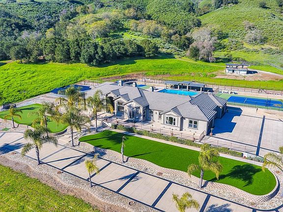 TWO CUSTOM BUILT HOMES on 40+ acres in the heart of Santa Clara Valley's Wine Country! The main home is 5,600 square feet with 5 beds and 4 baths, and the second home is 1,400 square feet with 3 beds and 2 baths. The two homes, situated privately on the property, offer a unique opportunity for two families or a rental income. Exquisite design and style in the main home, featuring built in African mahogany cabinetry, elegant lighting fixtures, single story open floor plan with 14 foot vaulted ceilings. Premium Chef's Kitchen with granite countertops, high-end Viking stainless steel appliances, center island with sink and 2 double ovens, full size Viking wine fridge, and oversized walk-in pantry. Surrounded by mountains and Gilroy's lush valley, the sprawling property features a pool & spa with spacious deck and gazebo, tennis court, basketball court, and hiking/biking trails! Plenty of parking for guests, plus a total garage space for 10 cars!