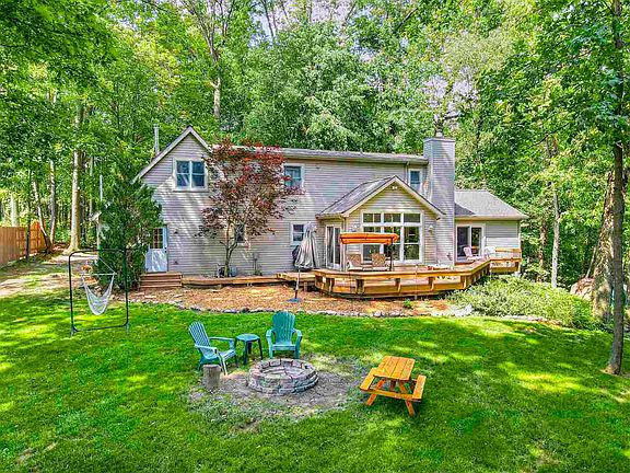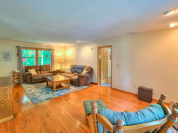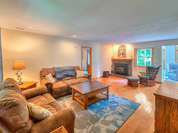 Your Own Private Sanctuary situated on 6.11 acres-4BR/2.5BA home with 2.5 Car Garage! An inviting front porch and the foyer leads to spacious living room with wood burning fireplace, very large kitchen with island-Granite Counters and eat-in area, new LED lights under and over cabinets, pantry and complete appliance package, main floor laundry, half bath, 4 season room with walkout to deck. Main Floor Primary bedroom with full bath and walk-in closet. Upstairs you will find 2 additional bedrooms and 2nd bath. A 4th Bedroom over garage offers fireplace and built in bookcases is ideal for a teenager or visiting family/friends or would make a great home office! A finished walk-out lower level offers a spacious family room with propane gas fireplace an exercise room and a large storage room. Active First Right of Refusal - 48 Hours.
