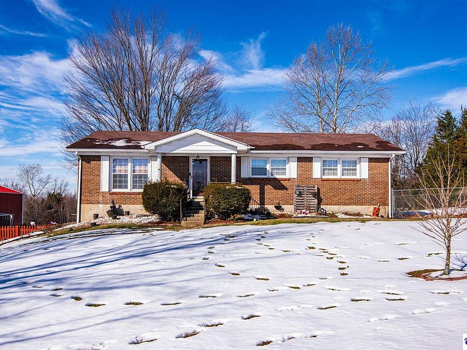 Welcome home! This brick ranch home with a full, walk out basement sits on 3 acres and boasts over 3,300 square feet of living space! On the main level you'll find gorgeous LVP flooring throughout that was installed in 2024. The kitchen was remodeled and walk in pantry added in 2023/24 and includes an abundance of cabinets with soft close doors and drawers, center island, and large breakfast bar. There is a formal living room (or could be used as a formal dining room) on the main floor as well as a huge great room that is open to the kitchen and features a brick, wood burning fireplace, vaulted ceilings and wood beams that add so much character! From the great room you can access the covered, screened in deck that's perfect for sitting and enjoying your morning coffee or dinner in the evenings. The main bathroom and basement bathroom were both updated in 2024, there is fresh paint in the hallway, living room, kitchen, and guest bedrooms on the main floor. The primary bedroom features laminate flooring and an en suite with a tiled shower. The guest bedrooms and basement family room received new carpet in 2023. The basement has a built-in bar and large family room, full bathroom, laundry room, plenty of storage space and a wood burning stove for an extra heat source. There is an oversized 2 car attached garage along with a detached RV sized garage that is 24x32! The backyard is fenced with a separately fenced area for horses, 2 pastures, a 3-stall barn with attached storage pole barn. There is also a 40x30 dog run. This property and home have been well maintained and is awaiting its new owners, don't miss your opportunity!