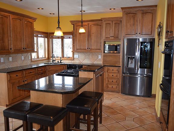 Country Living in Grand Chute on nearly 1 Acre with extra driveway to park a boat or RV. 5 bds, 4.5 ba. & 4 car garage. Approx 4500 sq.ft. Extra large kitchen w/granite and breakfast nook, maple cabinets, double sided fire place. Formal dining & wine bar , huge Great Rm w/ windows galore. Two master suites, one in the first floor with cathedral ceilings, fireplace, large steam shower, his and her custom walk in closets. Second master suite on second floor w/WP tub, walk-in shower and a 9x15 closet. Professionally designed and refinished walk out lower with 2nd fire place and family room, office area, wine fridge, rec area, bedroom and bath.