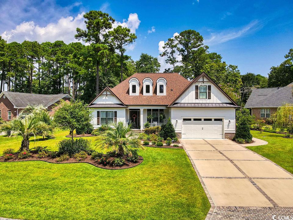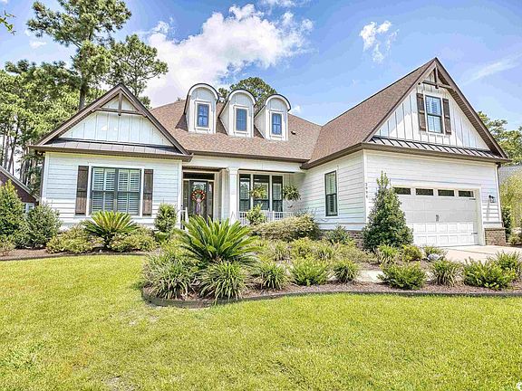 This custom-built home is filled with amazing crown molding and trim throughout the house! The 15-ft ceilings in the great room and kitchen will take your breath when you first step into the home. The great room features a stone fireplace with remote controlled gas logs with custom cabinets and shelving on each side. Wood beams and tray ceilings in great room and kitchen. There are speakers and recessed lights in the ceiling in all rooms as well as a ceiling fan. The formal dining area features a double tray ceiling painted to accent the furniture and rugs. To the right of the great room is the large kitchen center island with granite surrounding the stainless farmhouse sink, custom cabinetry with granite countertops, tile back splash, gas range, upgraded appliances, and pantry. There are two bedrooms and a full bath with tile shower beyond the kitchen. Swinging doors set this area apart with much privacy. The oversized Master bedroom beyond the great room features double tray ceiling, recessed lighting, and ceiling fan. The master bath features custom cabinetry, granite countertops, double vanities, oversized walk-in shower with designer tile and rain head. The master closet is a dream come true with custom hanging and shelving and a pocket door. Upstairs is the fifth bedroom/bonus room accessed by wood tread stairs from the laundry area. The exterior of this beautiful home is Hardie siding Color Plus, with brick accents, metal accent roofing with dormers, and architectural shingles. The long driveway and walkways are concrete and brick as well as a brick enclosure for the compressor. For those who love getting fresh air and relaxing, the over-sized screened porch certainly meets those needs. Sit back and watch the golfers tee off on the 9th tee box and fairway and watch the variety of birds and wild life] nearby. Other great features of this well maintained home is wood ceilings on the screened porch and the front porch, full view custom made storm door at the entrance; extensive landscaping, with palms, elm, Crape Myrtles, weeping willow, Eastern Red cedar, Japanese Maple tree, and an oak tree; roses and Encore azaleas; camellias; and numerous perennials. Irrigation is in place to keep all this landscaping looking great; extensive drainage was installed to take overflow water from the golf course to the street; and landscape lighting makes the grounds and home look like a showcase at night! There are gutters around the entire house and Raptor gutter guards have been installed. To enhance the beauty of this home, plantation shutters were installed throughout. River Hills is a great golfing community and the HOA offers activities for everyone. It is located just minutes to the Little River waterfront and 10 minutes to the NMB beaches, shopping and entertainment. Do not miss your opportunity to own a beautiful home with all the bells and whistles! Make an appointment today. SQUARE FOOTAGE IS APPROXIMATE AND SHOULD BE VERIFIED BY THE BUYER (S).