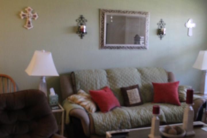 Very well maintained condo with large covered screened patio Living area has Mexican tile