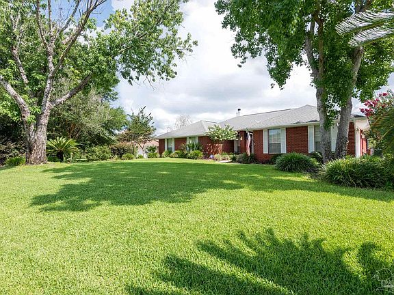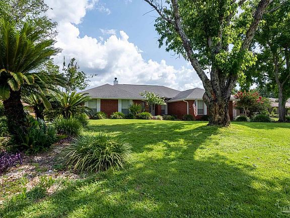 With an acceptable offer, the sellers will replace the roof. The home has a transferable warranty through Old Republic which also covers the pool and septic system. Experience your own piece of paradise in this must-see contemporary brick, lakefront pool home in the desirable subdivision of Spanish Trace Estates. This home has beautiful touches and highlights. As you walk into the open foyer, you’ll notice hardwood and tile floors in the main living areas and French doors entering into the home office. The open large great room has high cathedral ceilings, a fireplace and French doors leading you to the screened in gunite pool with views of the stocked fishing lake. The patio has an expansive paver deck and covered seating area for all your guests. The huge eat in gourmet kitchen is ideal for a large family with great counterspace and plenty of cabinet space, an island and separate buffet. As you enter the primary bedroom you're welcomed with a spacious feel and invitation for relaxation. Complimenting the master is the en suite that includes a double sink vanity, soothing soaking tub and separate shower that connects to your spacious walk-in closet. The home also features a huge laundry room with plenty of storage space, a 50amp electric car outlet in the garage, and irrigation pump for the beautifully landscaped yard. With close proximity to shopping, restaurants, schools and just minutes away from Navarre Beach, this is a true entertainer's home.