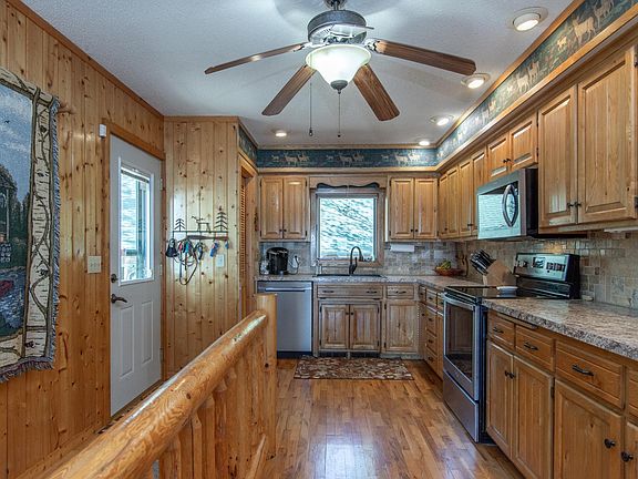 Horseshoe Lake with 100 feet of perfect sand beach and perfect elevation, this is the one you have been waiting for, Enjoy morning sunrises on your 28 x 15 deck. This 2-bedroom log sided year round home with lots of tongue and grove Knotty pine and a stone gas fireplace. Also on the property is a studio 23 x 34 that has been used as a hobby room and extra sleeping with another ¾ bath. You will have plenty of storage for your toys with the 30 x 40 garage with 16-foot doors. Furnishings are negotiable.