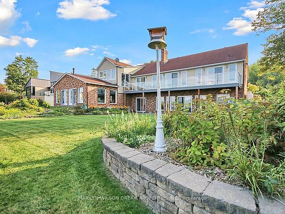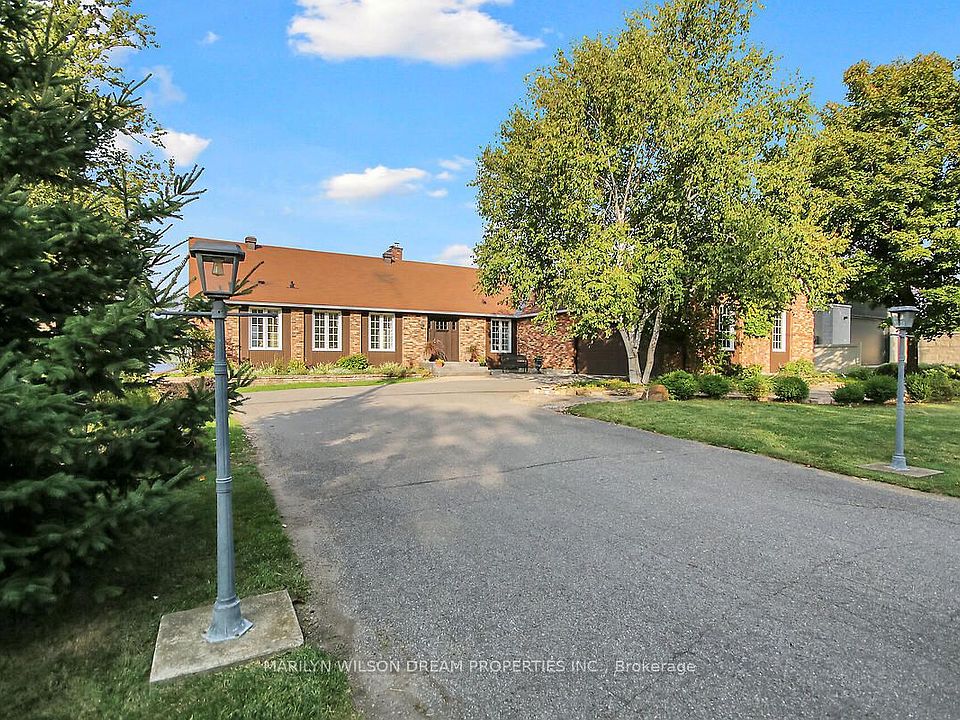 Charming waterfront residence just minutes from Kanata! Spectacular views overlooking the Ottawa River and the Gatineau Hills. Extensively updated bungalow with lower level walkout. 105' waterfront with sought after deep waterfront for boating & swimming. Two main level bedrooms plus two on the walkout level and 3 baths. Exceptional views from all principal rooms. Living room with wood burning fireplace & cathedral ceilings. Stunning gourmet kitchen with luxury cabinets, granite counters & 9' island. New fridge & stove in 2025. Principle bedroom with cathedral ceiling, newer composite patio, his/her walk in & updated ensuite. New walk-in shower, cabinetry, quartz countertop and new toilet in 2025. Second bedroom currently used as office. Curved open staircase to lower level. A huge stone wood burning fireplace creates an inviting atmosphere to this walkout level. Family room also features a wet bar and patio doors to yard. Two additional bedrooms & 3 piece bath. Massive 55' x 26' BONUS rec room was used as an Art studio & teaching facility. Heated separately & has a private entrance, as well as main house access. Great for studio, in-law suite, home business, games room, gym, party room, etc. One could also consider Airbnb rentals. Mud room off of oversized 2.5 car garage. Newer windows & patio doors. Impeccably maintained home. Full list of updates attached. A rural getaway minutes to the marina, Marshes golf, Kanata hi-tech, CTC, etc. No need for a cottage! 24 hours notice for showings please.