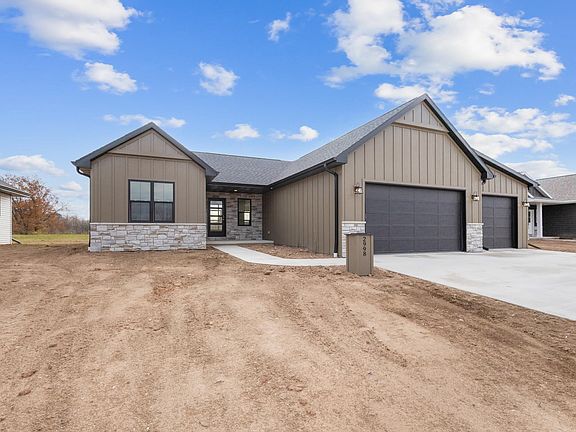 Welcome home to this spacious 3 bedroom, 2 bath ranch located in the highly desirable Bedford Heights subdivision in Bellevue! The kitchen boasts stunning custom maple, caramel stained cabinets accented by Calacutta Alto Quartz countertops & an Arabescato Venato natural stone backsplash. The kitchen opens to the main living area complete with a 50" Simplifire Allusion Platinum Linear Electric fireplace surrounded by Ardesia Kwik Stack stone and a cathedral ceiling featuring a gorgeous caramel stained beam. Terra Timber Meadow Sage LVP can be found throughout the main living areas. The primary suite features a large walk in closet & bathroom with dual sink vanity. Lower level is stubbed for full bath & has an egress window for future expansion.