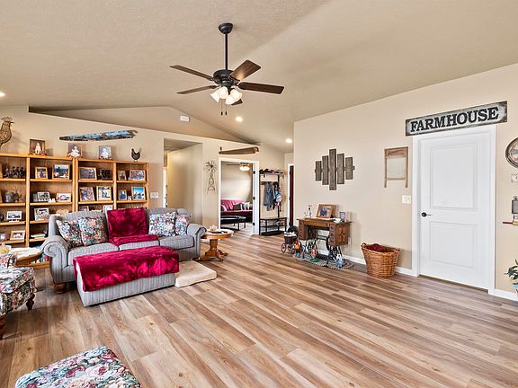 - Ceiling Fan(s), Granite Counters, Kitchen/Dining Combo, Main Level Primary, Pantry, Vaulted Ceiling(s), Walk-In Closet(s), Window Treatments