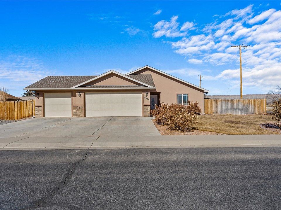 Immaculate home with no stairs in a quiet neighborhood near the Colorado River. Unobstructed views of the Grand Mesa outside of your front door. Three bedrooms, two full bathrooms and a 3 -car garage with plenty of storage. Home has new LVT flooring, carpet, baseboards, interior paint, and new stainless-steel appliances. A new retractable patio umbrella on one of the two patios provides extra comfort while enjoying the outside. Large area for gardening, BBQ, RV parking for your toys and a separate storage shed for all of your other tools. All information should be verified by buyer.