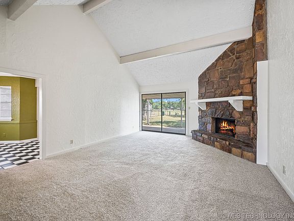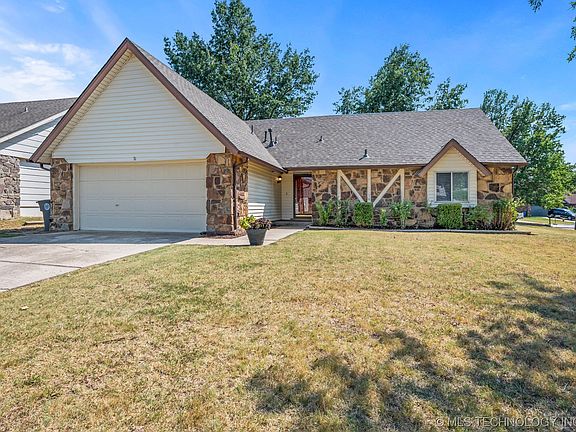 Single story on corner lot backs to Greenbelt/Page Belcher Golf. Move in ready! New Roof (8/2023), Energy Efficient HVAC 11/2019, Newer Paint, Carpet, Dishwasher, and some fixtures. Expansive Vaulted Great Room with fireplace and Southern windows view greenbelt area. Covered patio. Cathedral Vault in Master with private bath and access to Pullman style full bath. All bedrooms have walk-in closets! Moments from Tulsa Hills Best Shopping and Restaurants and easy highway access. Flexible plan and Jenks Schools! Well maintained and selling as is. Offers presented next week.