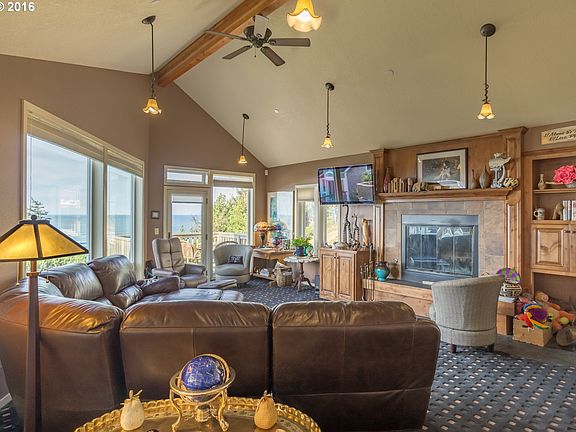 Dramatic ocean views! This is a great entertaining and family home with plenty of room for company. Spacious open living area with wall of expansive windows to view. Kitchen features granite counter tops, slate flooring, high-end appliances and cooking island with built-in steamer and prep sink. Three wind-protected decks offer the ultimate in outdoor living enjoyment. Gated upscale neighborhood.