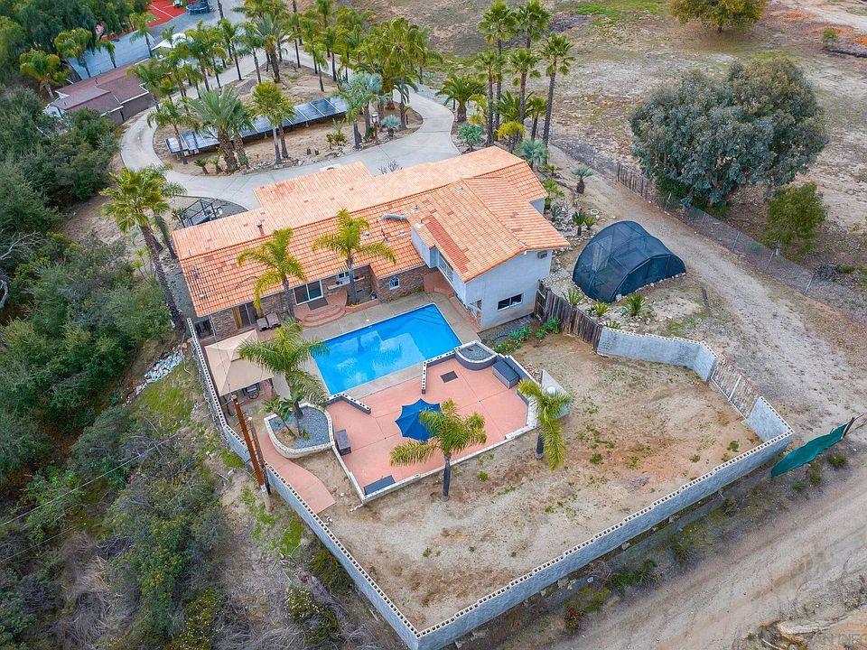 Welcome to your personal retreat, a cozy haven tucked away from the hustle and bustle. This sprawling ranch-style estate is not just a home; it's a whole story waiting to unfold. With TWO homes on the property, you're getting a double dose of comfort and charm. The main home, freshly renovated with love and care over the last two years, sits on a hill, giving you views of lush palm trees and the peaceful countryside. Picture lazy afternoons on the patio with family and friends or cooling off in your private pool on a hot day. Kids, or the young at heart, can let loose on the custom sports court and playground, while both homes keep things eco-friendly with fully-owned solar power so you have little to no electric bill. The main residence, a 4-bed, 2.5-bath sanctuary spanning 2,775 sqft, comes with a spacious bonus room awaiting your creativity – whether it transforms into a game room, music room, playroom, craft room, or an inspiring office is entirely up to you. The second home is a thoughtfully renovated 3-bed, 2-bath retreat spanning 1,100 sqft. Live in one and rent the other, or create a multigenerational family estate! The large 735 sqft Quonset hut is perfect for a workshop, additional garage space, or more! The property also includes a large greenhouse and plenty of room for additional agriculture endeavors whether it's starting a garden or cultivating a small family vineyard. The zoning also allows for a chicken coop or other farm animals! This property is an opportunity to create the haven you've always wanted, so come take a look and let your imagination run wild.