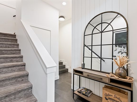 Sleek modern townhomeCalcutta marble countersOpen-concept main floorTiled fireplaceWet barSs appliancesGas range