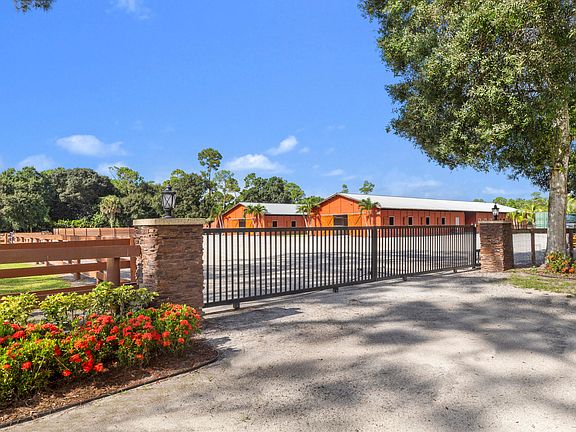 A private training oasis with 2 barns totaling 26 stalls, oversized arena measuring 250 x 250, 4.5-acre grass riding field, round pen and 12 large paddocks with mature shade trees. There are two center-aisle barns, with 14-stalls and 12-stalls, and one with a studio apartment. Each barn has 2-tack rooms, feed & storage rooms, half-bath, and 3-grooming stalls. There are 4 wash racks in the courtyard, 2 of which are covered. There is a clubhouse with a kitchenette, 2 private staff rooms, 2 full bathrooms and beautiful observation deck overlooking the riding arena. The equipment shed also includes an office/studio with full bath. The entire property is completely fenced with an electric gate. This property is perfect for all disciplines of riding and a great income producing opportunity. Other features:
