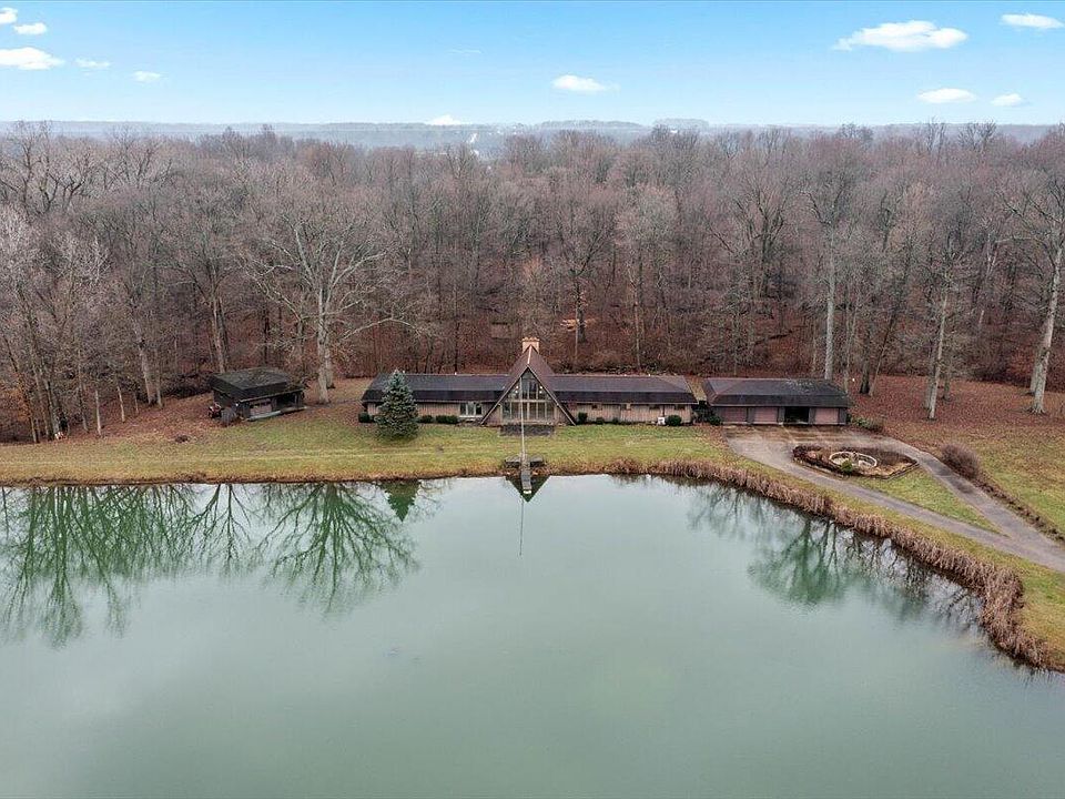 Check out this AMAZING secluded property situated in the rolling hills of Champaign County OH! A stunning 71 acres offers peace and tranquility at its finest - with a flourishing 7 acre pond stocked with assorted species of fish, 6-7 tillable acres, unincumbered wood lands with pines & evergreens too! This diverse landscape creates a haven for wildlife, making it a nice hunting destination. Whether you are an avid hunter or simply just appreciate nature, this land promises an amazing outdoor experience full of nature and peace. The full concrete drive leads you to the 3000 SF home, with attached guest accommodations offering a private entrance to the living quarters, an attached 4 car garage and a 2 car detached workshop. Loads of character with the A frame style architecture w/ floor to ceiling brick fireplace, and flag stone patios - this diamond in the rough is ready to be brought back to life! Easy access to Dayton, Troy, Wright-Patterson Airforce Base and the highway. Call today for your private tour! Please do not access the property without representation.