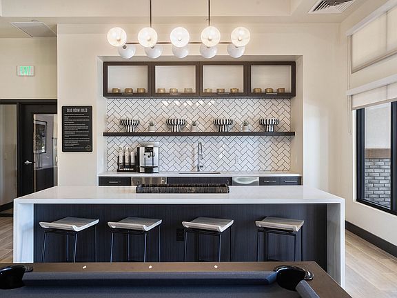 - Exterior features: Barbecue, Clubroom with Billiard Games, Complimentary Coffee Bar, Luxurious Wood-Style Flooring, Modern Shaker Style Cabinet with Black Hardware, Pet Park, Stainless Steel Appliances, TV Lounge