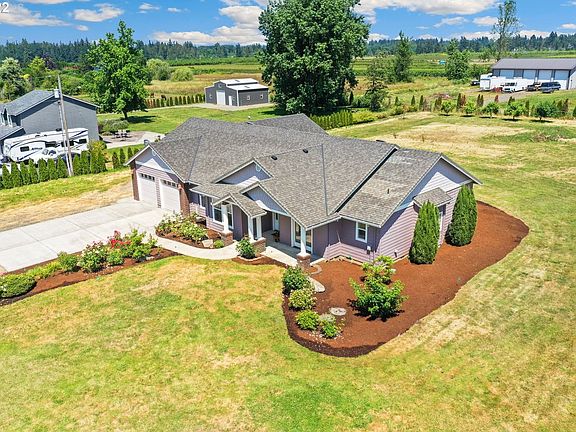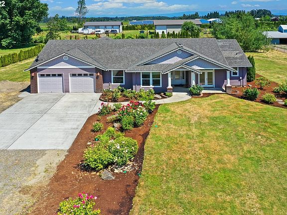This desirable custom single level home sits on 2.25 acres. Thoughtfully designed with an open concept floor plan, tall ceilings, and a large great room with gas fireplace. The kitchen features custom cabinets, granite counters, and breakfast bar. The spacious owner's suite has a walk-in closet, spa soaking tub, and den with french doors. Sprinklers, 3 car garage and patio. The level acreage is perfect for gardening, animals, and entertaining! A private escape with endless possibilities!