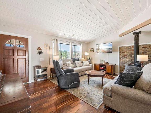 Welcome to this beautifully updated Valley Center retreat nestled on 2.32 usable acres with owned solar + Tesla battery backup and a detached office/guest room. Step inside to find lovely wood laminate floors flowing throughout the home and your living room anchored by a cozy wood-burning stove. The kitchen offers a spacious walk-in pantry with charming barn door, under-sink water filtration and center island providing plenty of prep and storage space. The primary bedroom features a recently updated bathroom and walk-in closet as well as private access to the backyard. Savings meets convenience with owned solar and a Tesla battery backup system. Beyond the main home, you’ll find a detached office/guest room—perfect for remote work, hobbies, hosting visitors or multi-generational living—as well as multiple sheds and storage units to keep everything organized. Set in the peaceful beauty of Valley Center, this property delivers both practicality and charm, offering an inviting lifestyle in a private, country setting.