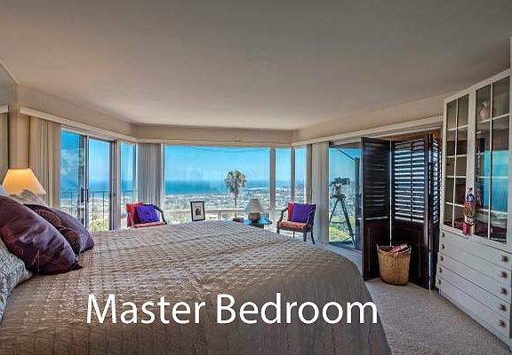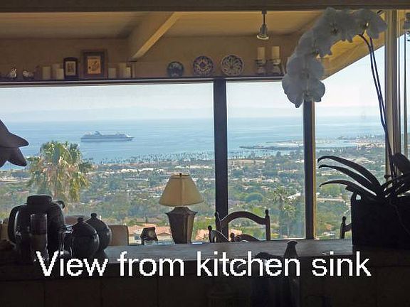 Perhaps the best view on the whole Santa Barbara South Coast! Certainly the best view in the $1M to $3M price range. Best financial possibilities. This 3900 sq ft home is designed to take advantage of the views, and has ocean, city and harbor views from EVERY room that extend 180 degrees from San Miguel Island, Santa Rosa Island, Santa Cruz Island, Anacapa Island, and (on a clear day) Palos Verdes and Catalina Island. (Every room, that is, except the bathrooms, the refrigerated wine cellar and the walk-in closet. Even the laundry room has the great view.) The property includes a fully self-standing detached 1100 sq ft casita that is permitted as separately rentable (i.e. an ADU) which is very rare in the view areas of town, This casita previously earned $3,000/month in rent (before improvements were made to qualify as an ADU). There is complete privacy between the main house and the casita. Since the $3K/mo is from a legally permitted source, it will allow you to qualify for, and pay for, $580,000 of additional mortgage (assuming 3.5% interest rate). While the home is beautiful, functional and in good repair already, this $580K will more than pay for most improvements anybody could think of! An elevator, larger garage, kitchen upgrade for example. Lot size approx. ½ acre, 4 bedrooms, 3½ bathrooms