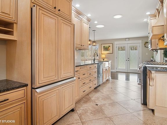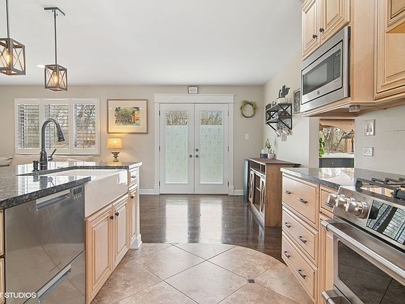 ABSOLUTELY STUNNING and TOTALLY UPDATED RANCH on over 1 acre, perfectly located next to the 61-mile IL Prairie Path! With approx. 3,600 sq ft of finished living space, this home offers luxury and style throughout. Step into the heated tile foyer and enjoy a custom Kitchen with high-end cabinetry, granite counters, stainless steel appliances-including pot filler, warming drawer, and double drawer dishwasher. The Family Room features a wood-burning fireplace, and the Dining Room boasts custom built-ins-ideal for entertaining. The spacious Primary Bedroom includes built-in cabinetry and a beautifully updated private bath. Two additional main-floor bedrooms feature hardwood floors, large closets, and updated full bath with marble, tile, and glass shower doors. The finished basement is a true showstopper-LVT flooring, Rec Room with wet bar, in ceiling surround sound Control 4 smart system and included wall-mounted TVs, plus a 4th Bedroom, Office, and Exercise/Bonus room. Outside, enjoy lush landscaping, a front patio, and a newer back patio with hardtop pergola-perfect for relaxing or entertaining. Updates include: roof, HVAC, driveway, patios, and sump pump, totally updated basement. There's truly nothing to do but move in! This is RANCH living at its finest-don't miss it!!