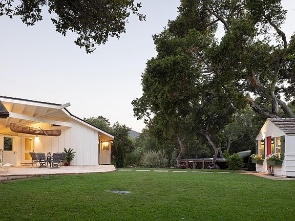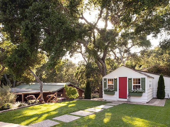 Located in the sought-after La Rancheria neighborhood of Carmel Valley, this private ~3 acre estate offers serene views of the surrounding Santa Lucia Mountains. Meticulously updated, the ~2,315 sq ft home features 3 bedrooms and 3.5 bathrooms, showcasing an open-concept design with vaulted wood-beam ceilings, original pecky cedar paneling, and generous windows that flood the interiors with natural light. The chefs kitchen boasts new high-end appliances and flows seamlessly into spacious indoor and outdoor entertaining areas, including a covered patio ideal for al fresco dining and an expansive lawn. A luxurious primary suite includes a convenient laundry room, dual vanity, soaking tub, and peeks into the surrounding forest. Beautifully landscaped with native gardens and mature oaks, the property includes a barn, ample parking, a 371 sq ft full guest house with a kitchen, and plans for a three-car garage. Just minutes from both Carmel Valley Village and downtown Carmel, this serene retreat blends tranquility with convenience in one of the area's most prestigious enclaves.