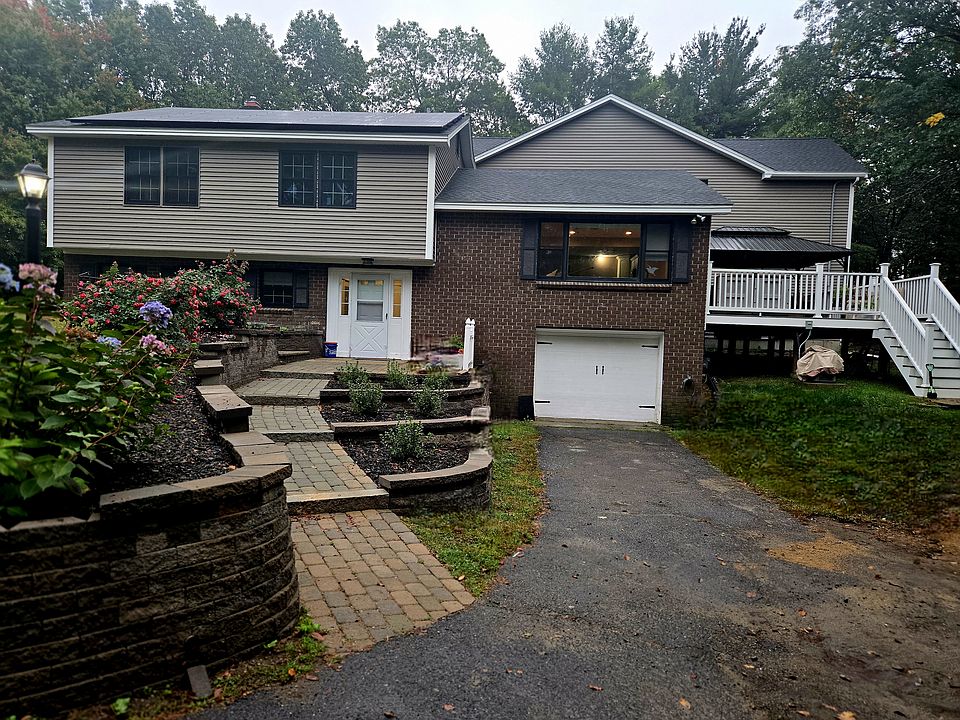 Upstairs has 3 more bedrooms with great closet space and a full bath. This house also boasts a large, 16 x 25 back deck off the kitchen and single car attached garage underneath. Newly landscaped front walk way, retaining wall and plantings.