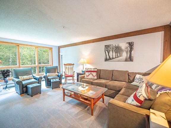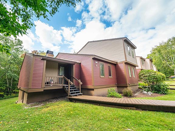 Fully updated and renovated Timber Creek end unit townhome with total privacy, easy access, and winter ski trail views. Timber Creek is located right across from the upper entrance to Mount Snow with direct shuttle service from your front door to the base area and convenient amenities including an on site management company, exterior maintenance, snow removal, landscaping, and more. The recently renovated Sugar House amenities center include indoor and outdoor pools, hot tub, gym, racquetball and basketball courts, pickleball and tennis courts, locker rooms, and a network of cross country ski trails. Inside you are treated to a renovated open concept living space with new windows and wood burning fireplace, a large open kitchen with stainless appliances, custom cabinets, quartz counters, and breakfast bar, spacious dining room which opens to the oversized private deck to entertain and BBQ, large main floor bedroom and full tiled bath, rustic mudroom entry with bench and cubbies, ski locker, and covered front porch. The walkout lower level has a unique layout thanks to the end unit extra windows, with 2 bunk rooms, a second full guest bath completely redone, a family room with ample space for hangout area and tv area, sauna, laundry room, owners closet, exterior area which allows outdoor hot tubs, updated on demand hot water, and great private side yard with adjacent babbling brook.