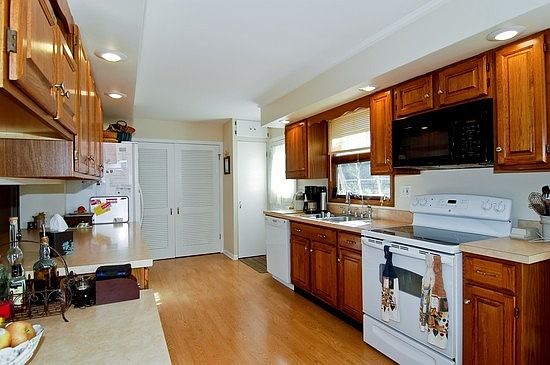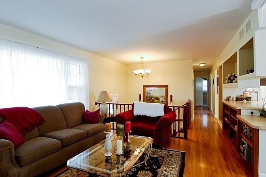 OVER 2,000 SQUARE FEET OF LIVING SPACE, 5 bed, 2.1 bath home on large wooded lot in quiet neighborhood. Feels like you are away from it all, yet close to everything! Galley kitchen with breakfast bar. Floor plan makes it easy to entertain large group. Refinished hardwood floors, plus newly remodeled lower level w/ 2 large brms & bath. Big 2-car garage w/ full attic and workbench. Large deck w/ space for table & grill