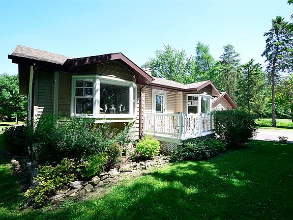 This mint condition ranch home sits on a beautifully landscaped and wooded acre lot close to parks, town and I-88. Relax on the front porch or backyard patio as you enjoy the peaceful surroundings and wildlife. Inside this well-maintained home you'll find gorgeous wood laminate floors throughout, neutral decor and thoughtful amenities. Generous room sizes include the inviting living room with lighted ceiling fan, cozy woodburning fireplace and bay window. The large eat-in kitchen offers plenty of space and boasts granite countertops, custom cabinetry with crown and bayed eating area. Both bedrooms provide the comfort and convenience of light ceiling fans and the master bedroom provides a bay window. Additional features include a full basement, 2-car attached garage and storage shed. There's absolutely nothing to do here but move in and enjoy!