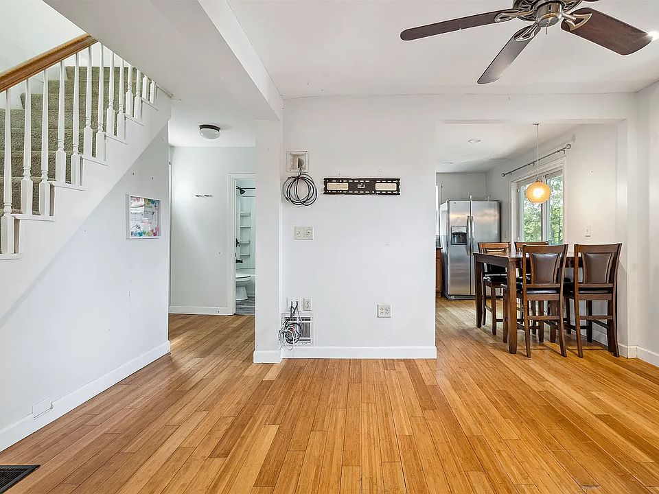 Enter into a enclosed porch which can serve as a closet and mudroom. First floor comprises of a large living room, kitchen, dining area, and full bathroom. Second floor is where you will find the three bedrooms. There is also a full basement with laundry available for use and storage.