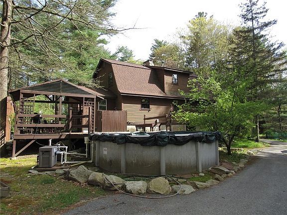 This property is ready for new owners! This is an amazing property and with some work and imagination, can be a show place for friends and family alike . Go off the grid on 17 serene acres surrounded by peace and quiet and mature trees as far as the eye can see. The property has a wrap around driveway ,circling the property, and doubles as a walking path. Spend time in the green house getting your garden ready for the summer. There are plenty of out buildings on the property used for storage. The barn on the property once was the home of llamas. Want some play time, there is a swing set in the back yard of the home. The dog house on the property could also double as a chicken coup. You may prefer to relax on the back deck overlooking the pool. This house comes with a Generac system so you will never be without power. Fix cars in the two car garage with extra storage. Inside the home, the mudroom opens up to a fully applianced kitchen area with granite counter tops, and a lovely dining room for holidays. The living room is a good size and features a beautiful stone fireplace with lovely book shelves. Picture starting your day with coffee out on the oversized porch. Upstairs, you will find a master bedroom with a fire place and his and her closets. Need extra room, there is a third additional small closet in the room. The second floor bathroom is complete with a jetted tub for relaxation. There are two smaller bedrooms currently being used as an office and a spare bedroom.