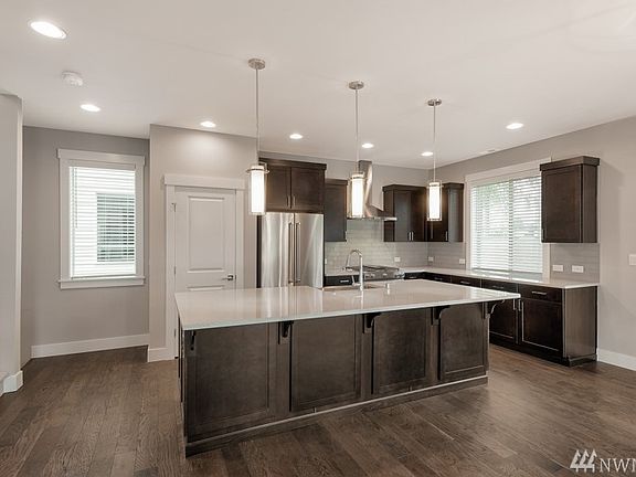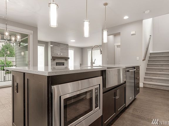 Move-In Ready + Buyer Bonus including fridge, w/d, window blinds & fully fenced yard! Beautiful 2210 plan has 4 bedrooms/3.5 baths + spacious great room w/gourmet kitchen & huge quartz slab island, full-height glass tile back splash & stainless appliances + hardwood floors, gas fireplace & covered deck. Spacious ground floor bedroom suite has covered patio. Other high-end features include high-end carpet & pad, painted mill work, fully landscaped yard, Nest thermostat, garage door opener & more!