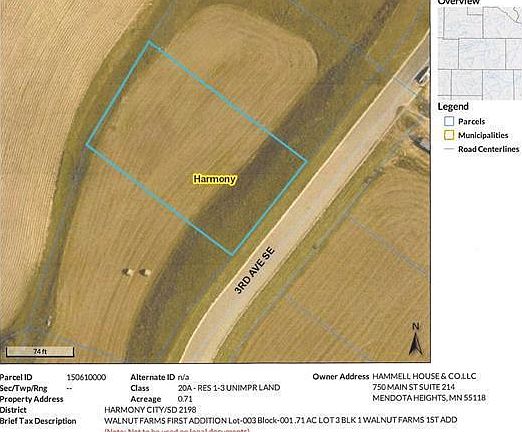 Build your new home in Harmony! This lot offers the opportunity for daylight or a walk out basement. Spacious .71-acre lot, surveyed on the south edge of town, offer easy access and endless possibilities from gardening to room for outdoor fun and relaxation surveyed and all assessments paid. All assessments & property taxes are paid up to date by seller.