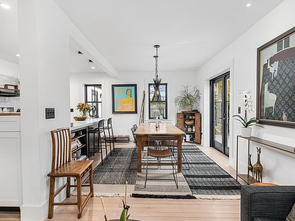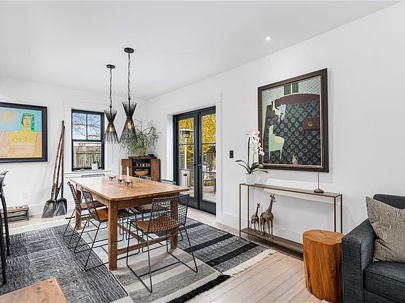This move in ready, modernized 1920’s house located in the historic and highly sought-after “ Point” neighborhood is ideal for anyone seeking in Newport. A very short walk to downtown, Goat Island and the harbor, this location provides easy access to dining, shopping and outdoor recreation and all that Newport has to offer, without getting in your car. Rooms are defined by high ceilings, black and white decor and white washed original hard pinewood flooring. The open floor plan is filled with light, with designated spaces for kitchen, dining and living areas. The first floor includes a half bath and laundry. Southern facing French doors lead to an expansive blue stone patio allowing for gracious outdoor entertaining. Two spacious bedrooms and full bath occupy the second floor. The property includes Anderson Replacement windows throughout, a delightful perennial garden and fenced yard with gates for optional off street parking, a 50 square foot storage shed and an outdoor shower. Artistically renovated in 2018, with additional updates since, 3 Third Street is perfect for those hunting for a high-styled low-maintenance abode. Many of the furnishings are negotiable in the sale. Great location for those considering rental income as well with it’s proximity to downtown, parks and Goat Island.