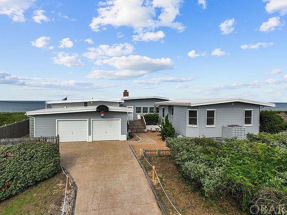 The Outer Banks as it’s meant to be enjoyed! PANORAMIC OCEAN VIEWS from this one-of-a-kind one level oceanfront on dead end street in sought after Seacrest Village. SEVEN bedrooms, 5 baths. This beautiful, immaculately maintained home sits on a large, VERY HIGH ELEVATION LOT offering ocean views from most rooms, the screen porch (w/picnic table, furniture, ceiling fan), and from the 86-foot-wide gated oceanfront deck (w/large HOT TUB, Nags Head hammock & 2-seat swing, new Polywood furniture) and elevated, lighted walkway to dune deck w/built-in benches & umbrellas, gates and steps to beach. Welcoming front entrance opens onto large west deck w/furniture and sunset views, wide steps, and walkway through pebble garden to long private driveway w/additional parking at top and on apron below. Gorgeous Juniper walls and ceilings, Andersen windows, Dual HVAC system (2 new outside heat pumps in '24), and carpet throughout (except in bathrooms/kitchen). Underneath carpeted areas are finished oak floors (except in the 2016 south addition of 2 en suite king bedrooms and last few feet of south hallway.) The inviting 21 x 29 centrally located oceanfront great room is 11 feet high at its peak with exposed beams, juniper walls and ceiling, ceiling fan, and so many windows you feel like you’re outside. Accenting the great room’s north end are an impressive brick wood-burning fireplace w/tile surround, built-in bookshelf/cabinet, game table, and large side window. From the dining area at south end, access the spacious kitchen with full ocean view, updated stainless steel appliances (large French door refrigerator w/2 ice makers, double electric ovens w/gas burners (top oven also convection), built-in under counter large microwave, dishwasher), quartz countertops, tile floor, ceiling fan, lots of cabinet storage and counter space, plus convenient pass-thru/breakfast bar to dining area and door to screen porch (also accessible from dining area door). The home’s north wing includes 2 oceanfront bedrooms that share a Jack & Jill bathroom with a jetted tub and an outside door to deck and north side outdoor shower. Across north hall is a large bedroom (currently configured as a den/library) with numerous built-in bookshelves/cabinets, queen sleep-sofa, and small en suite bathroom with shower. Off north hall are the north air handler unit, large, shelved storage closet, overhead storage cabinets, and coat closet. Also on home's north wing is an inside laundry room with large supply closet, cabinets, large-capacity washer (new ‘20) & large capacity dryer (new ’24). Accessible from laundry room's rear door is large 670 sq. ft. 2-car garage with 2nd full-size refrigerator, utility sink, and large storage closet. The home’s great room & south wing are on a separate air handler unit. South wing has 4 bedrooms and 3 full baths. Front 2 bedrooms (one with partial ocean view) share hall tub/shower bathroom w/linen closet, and outside door access to small porch and south outdoor shower. The 2 rear bedrooms, added in 2016, are very spacious en suite king bedrooms (south side bdrm. w/ocean view). Each has large bathroom w/tiled, low-step-in lighted shower, adult height toilets, and large linen closets. All 7 bathrooms have grab bars. New high end IBPVC roof over garage, great room, and entire south end of house installed in 5/2022, (with Gallop Roofing’s 5-year workmanship warranty). Similar IBPVC roof over entire north wing installed in 2017. ADT Monitored Security System. Sold FULLY FURNISHED (w/a few exceptions on Exclusion List.) Agent and owner do not guarantee floor plans or measurements completed by Lighthouse Visuals. KABA code, Saturday turnover. EZ to show!