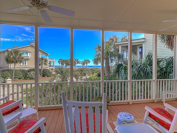 Steps from the beach, Second Wind is a piece of heaven on earth! Ocean views abound in this elevated 5 bedroom house. The interior is open and airy with plenty of space for family and friends. The natural light floods the interior of this home keeping it bright and sunny all year long! The porch space is perfect for soaking up the sea breeze after a day of fun in the sun! The first level has an open floor plan with wood floors throughout. The kitchen flows into the dining area and living room with built-ins on either side of the fireplace. The living room opens onto a large screened porch complete with adirondack rocking chairs overlooking the ocean. Off the living room, you will find a wet bar and an oversized laundry room with outside access for added convenience! This home features 5 bedrooms and 3 1/2 baths. On the first floor, the master with a king bed has a private bath. Two large bedrooms - one with two queens, and the other with a daybed and a queen - share a full bathroom. Walk up the stairs to find two more bedrooms, a charming bunk room and the master suite. This bedroom has a private outdoor balcony with a view of the ocean, huge walk-in closet, a wall of built-ins for storage and books, and a master bath with a large soaking tub, shower and dual vanities. The sitting room off the master is the icing on the cake! Surrounded by glass, the ocean views are stunning. There are plantation shutters to let in natural light, but also provide privacy. Finally, the house comes with a private Concierge who is available before, during, and after your stay! Your concierge can assist with booking beach chair rentals, organizing grocery delivery, and anything else you might need for the perfect beach vacation. The concierge will be your primary point of contact during your vacation should you need anything. This is the perfect home for your next vacation! Come and make memories at Second Wind. Guest pays rent plus tax and cleaning. Owner pays utilities.