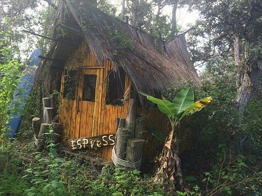 village of small, rustic cabins - used to be a thriving vacation village.. created by an artist... using bamboo.. cocoanut rope.. a fire pit.. and more... needs a special buyer with vision...
