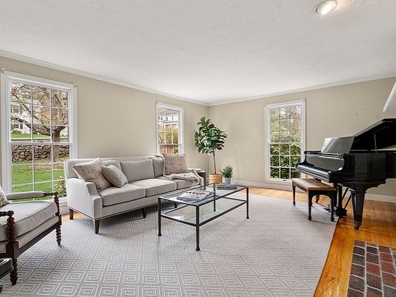 Beautifully sited on the historic section of Main Street, this charming, oversized Cape is ideally located just minutes from Wellesley & Needham Centers yet a short walk to the stunning conservation lands of Springdale Field and Pegan Hill. A large open foyer leads to sophisticated living and dining spaces, light-drenched and framed by floor to ceiling windows and hardwood floors. The eat-in kitchen connects to an inviting family room with built-ins and a beautiful sunroom opening to a patio and expansive private yard. Upstairs, you will find four generous bedrooms, including a serene primary suite, plus a spacious bonus room over the garage perfect for media or play. A large basement offers endless potential for recreation and ample storage. Set on a private, lush acre with mature plantings and abundant flat space, this home blends timeless appeal with an unbeatable Dover location. This is an exceptional offering!