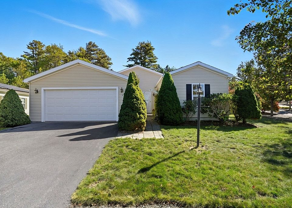 A beautiful home in the 55+ community of West Wood Village. This open floor plan is great for entertaining with a spacious dining room that opens to a living room bright with natural light. Cooks will love the oversized kitchen with a center island, and has an eating area-morning room/breakfast nook with a slider that leads to a private deck. A huge, primary ensuite with dressing area and closet, additional walk-in closet and ample sized full bath with separate shower and soaking tub. Another bedroom, full bath and den with French doors rounds out the living space. Convenient two car attached garage with mud-room/laundry room entry. A pretty corner lot in this resident owned park. The HOA fee includes taxes, lawn maintenance, trash pickup, irrigation, clubhouse (with exercise room, kitchen, game room, library) inground pool, snow removal of streets, driveway and walkways….. don’t miss this one!