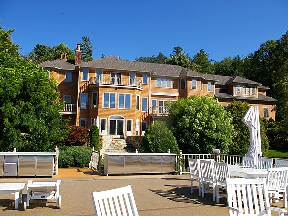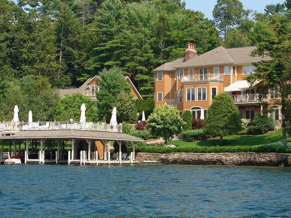 This Lake George residence with western exposure and sunsets is 5 star in every way! A stunning, private, and majestic property nestled close to the lake with a level lot and sandy beach comprised of 1.82 acres and 335' of lakefront. This custom 8000 sq. ft. smart home is beautifully and immaculately decorated with 6BR and 6BA. This property boasts an elegant and inviting MBR suite, library w/fireplace, exercise room, 3 car finished garage, custom designed lush landscaping with waterfall, 2000 sq. ft. guest house, large boathouse with sundeck, and is one of the premier properties on the lake. Come see this fine property with an advanced private appointment.