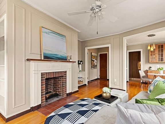 Decorative fireplaceModern kitchenLovely dining roomGenerously sized bedroomsSleek cabinetryBuilt-in bookshelvesCorner unit