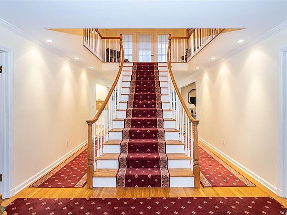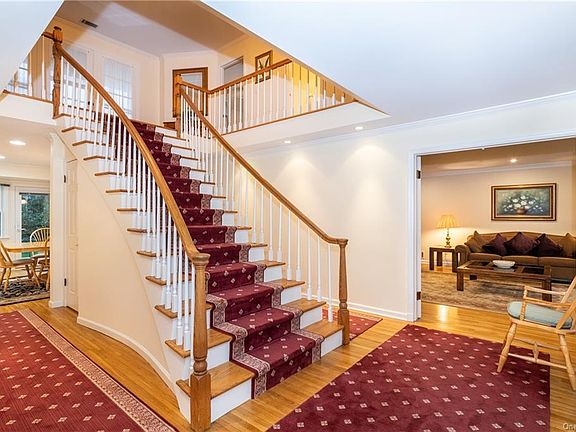 Ideally situated on 1/2 acre at the end of a quiet cul-de-sac, this beautifully-maintained colonial offers a sought-after suburban escape: a classic, secluded home ensconced in beautiful landscaping. This turn-key home is replete with convenient amenities, architectural details and the perfect layout. The first floor flows from a large entryway to formal living and dining rooms, a well-appointed kitchen with granite countertops, an open family room off of the kitchen, a home office and a full bathroom, and a mudroom area/laundry room connecting to a 2-car attached garage. Sliding doors off the kitchen lead to a patio, providing casual elegance and outdoor dining with views of the beautiful, flat yard. The second floor is accessed by a magnificent stairway onto an exquisite landing that opens to a master suite which includes a spa bathroom and dream walk-in closet and three additional bedrooms and a hall bath complete the upper level. Additional finished space on lower level has room for home gym, recreation space and more.