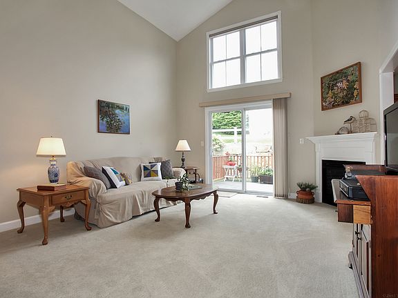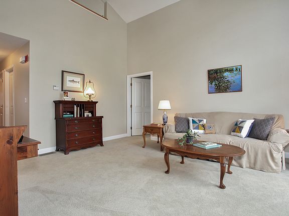 New to the market! Freshly painted with soft and warm colors, new carpet and gleaming hardwood floors, this bright and spacious young 55+ townhouse is move in ready! A nicely sited end unit, with central a/c and gas heat, it has a 2 car garage, and is handicap accessible. The living room boasts cathedral ceilings, a gas fireplace, and sliders to the deck. The pristine kitchen with white cabinetry, HW floors and breakfast bar is open to the dining room. A large 1st floor master bedroom has a generous walk in closet, as well as a master bath with a shower stall and jetted soaking tub. The 2nd 1st floor bedroom is also large, with a double closet and adjacent to the hall full bath. Upstairs is a loft, which could be used as an office or family room, and there's plumbing in place, should a 3rd bath be in your plans. There's a laundry room on the main level, with access to the garage. A huge basement provides ample space for storage. Not to be missed!!