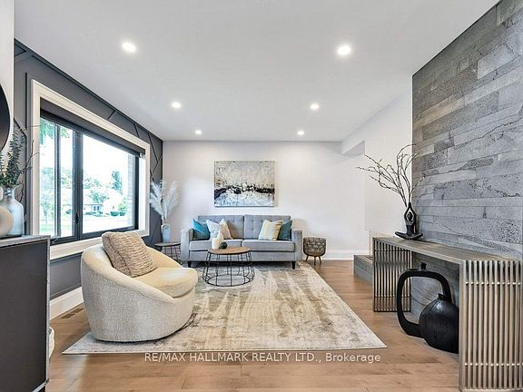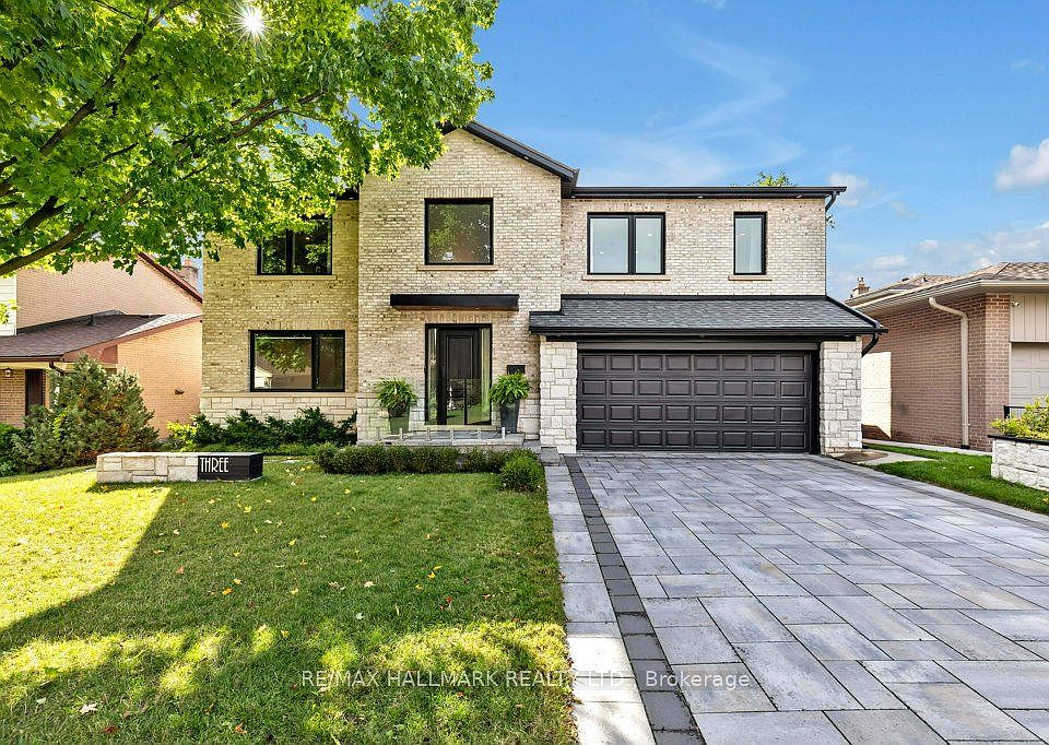 Welcome to 3 Averdon Crescent, a luxurious 4 + 1-bedroom, 4-bathroom detached home, completely rebuilt and extended five years ago. This residence offers an expansive open-concept layout, highlighted by soaring ceilings and a stunning chandelier in the foyer. A two-way, linear gas fireplace separates the formal living room and family room, enhancing the sense of space. The large dining area with walkout to the deck leads into a gourmet quartz kitchen with a central island and top-tier appliances.Upstairs, the luxurious primary suite features a wall-to-wall closet and a spa-like 5-piece ensuite. Three additional spacious bedrooms with ample closet space and a stunning 4-piece bath complete this level. The finished basement includes a glass-walled office, a stylish 3-piece bathroom, and a spacious rec room with walkout access to the beautifully landscaped backyard, which offers three seating areas and room for play. With over 600 square feet of outdoor living space, a raised deck, and views of the city skyline and CN Tower, this home combines modern luxury with family-friendly comfort. Additional features include EV charging in the garage, proximity to great schools, green spaces, and ravine access. This is the home you've been waiting for!