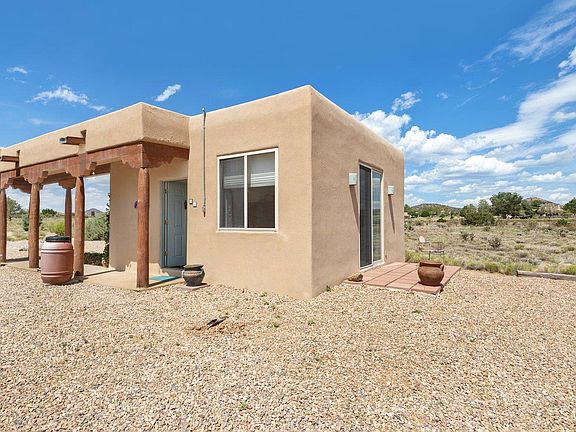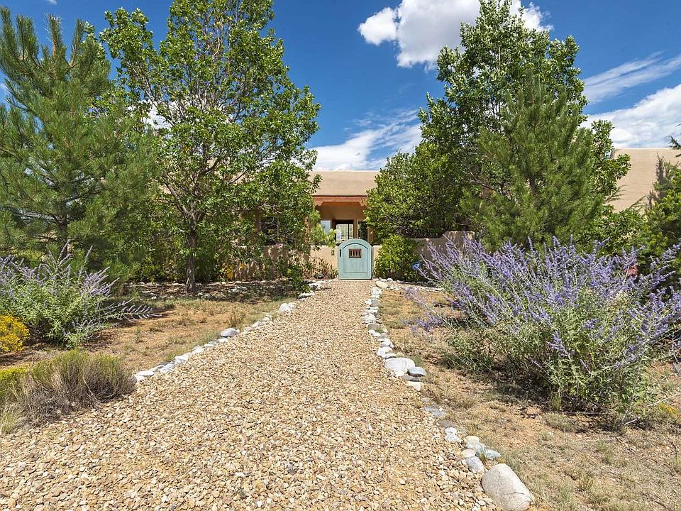 Darling Eldorado single-level property with sunny detached studio. Newer kitchen with island overlooks dining room and breakfast area. Generous pantry. Radiant heat in main house and studio. Large kiva in living room. A covered walkway takes you to the studio with a full bath and laundry hook-ups. Nice-sized master has door to rear portal and beautiful foothill views. Master bath has double sinks, separate tub and shower. Newer windows. Oversized 2-car attached garage. Drip system. NO STEPS. Close to paved road, rail trail and Eldorado shopping. ONIX RADIANT HEAT TUBING. COPPER FOR DOMESTIC SUPPLY.