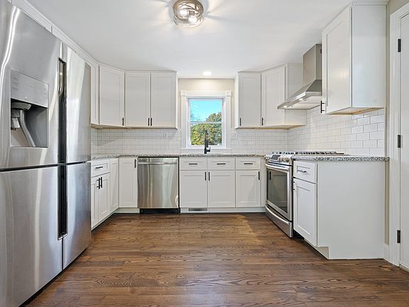 Showings to start at open house 4pm-6, Friday Oct 28. Radiant and Captivating Home with Rec Room! Idyllically nestled on a beautiful corner lot, this 3BR/2BA, 2,137sqft residence delightfully emanates a classic northeastern vibe with charming Cape Cod architecture, neatly manicured landscaping, and a huge back deck over looking the attached pool. The interior welcomes with beautiful hardwood floors, a neutral color scheme, an openly flowing traditional floorplan, and a large living room. Fashioned for easy meal prep and confident entertaining, the open concept kitchen features stainless-steel appliances, granite countertops, ample wood cabinetry, a tile backsplash, high end gas range/oven, SS exhaust hood, a french door refrigerator with an adjoining dining room offering quick outdoor access. Three bedrooms are generously sized with dedicated closets and provide ample comfort on chilly winter days. Two brilliantly renovated bathrooms provide elevated self-care experiences with shower/tub combos, modern storage vanities, and attractive tilework. Other features: oversized asphalt driveway, laundry area, finished lower-level with rec room and home office or 4th bedroom! 5 min to RT101 make this a perfect commuter location! Quick close possible. Agent interest.
