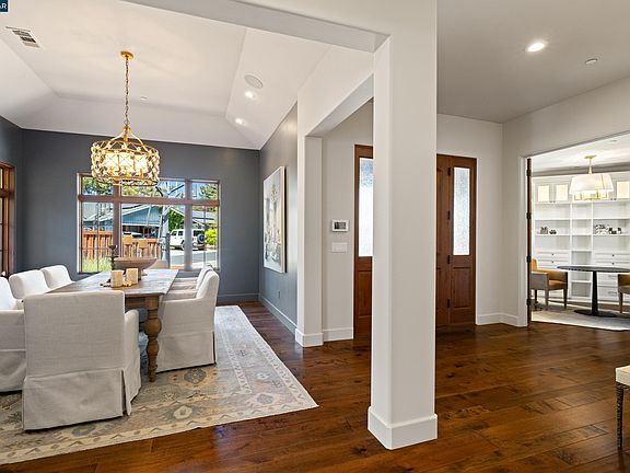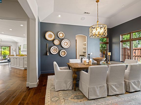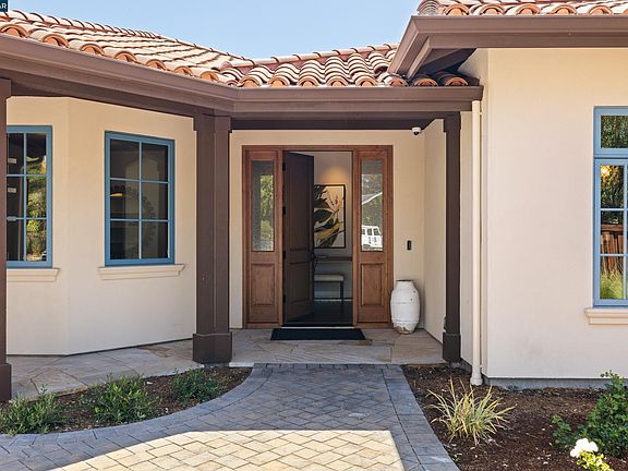 Built in 2017, this 5-bedr, 4.5-bath Mediterranean-style home blends timeless architecture with every modern comfort. Elegant hardwood floors, soaring ceilings, marble and quartz surfaces, and designer tile and fixtures set a refined tone from the moment you walk in. At the heart of the home, the expansive kitchen and great room offer a warm, open space perfect for daily living and easy entertaining. The kitchen is a chef’s dream, with a marble island, high-end finishes, 2 walk-in pantries, and a separate butler’s pantry for seamless hosting. The primary suite has private patio access, a spa-inspired bath with dual sinks, soaking tub, spacious shower, and large walk-in closet. 3 additional bdrms include a Jack-and-Jill bath and a private ensuite. A stylish powder room serves guests, and the 5th bedroom—fitted with custom built-ins—makes an ideal home office. The separate au pair suite—connected to the garage—includes a full bath, built-in Murphy bed, and its own mini-split system for independent comfort and privacy. Outside, the oversized yard and patio are made for entertaining. Raised garden beds, fruit trees, a play structure, and storage shed add both beauty and function. Set on a peaceful private street, this home is just minutes from top-rated schools, the town center.