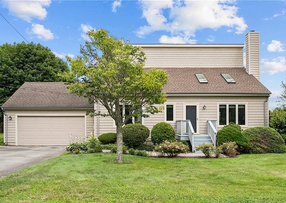 Meticulously maintained and updated contemporary styled home with traditional accents throughout and 2 car garage. Many updates including newer roofs, siding, windows and garage door offer relatively maintenance free living on nearly half acre of lawn and gardens. Enter into a welcoming light filled living room with fireplace, vaulted ceiling with open floor plan to dining room, kitchen and spacious outdoor deck, convenient for entertaining. This first level is completed with a primary bedroom, full bath and laundry facilities. Second level consists of two guest bedrooms, a full bath and bonus room or office. Pull down stairs allow for plenty of attic storage. Additional storage can be found in the full walk out basement with workshop. Two efficient Ductless Split System Heating/AC Units keep the whole house cool during these hot summer months. Conveniently located in established, quiet neighborhood and minutes of Beaches, Parks and Downtown Newport Activities. Due to Seller Relocation, property being sold "As is" with Closing to be Held On or Before September 12, 2023.